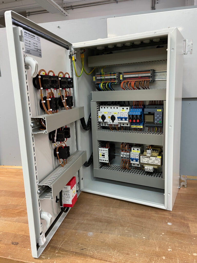 Lieferung eines Wandschaltschrankes für die Fernansteuerung einer Kältemaschine und den zugehörigen Verdampfer- und Verbraucherpumpen. Programmierung der verbauten SIEMENS LOGO!-Steuerung.